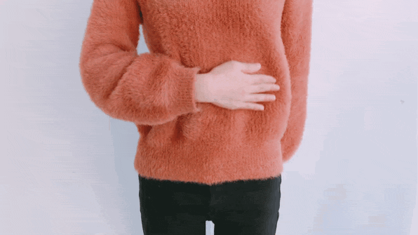 双手掌心交替顺时针揉摩肚脐,可通畅胃肠之气,促进消化。